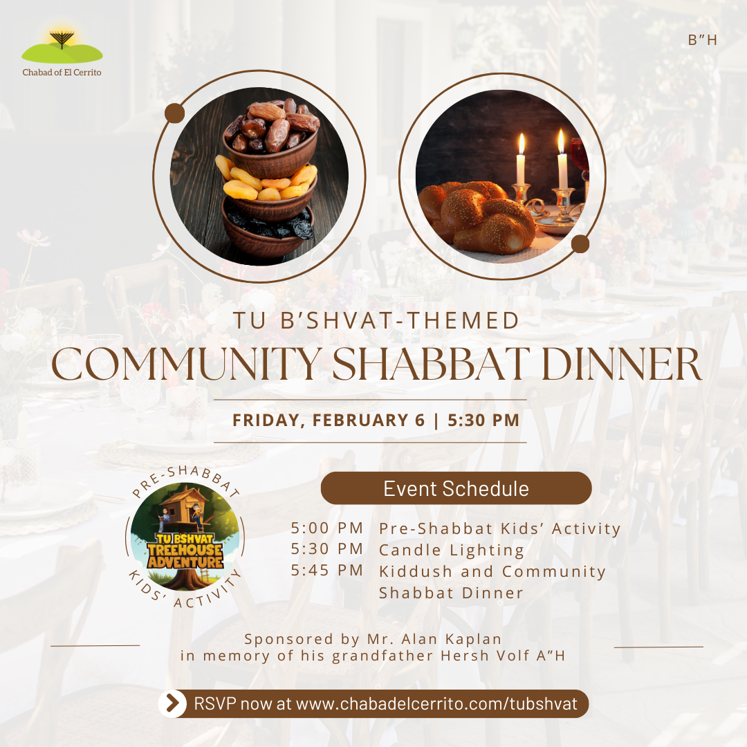 Join us for a Tu B’shvat-themed Community Shabbat Dinner on Friday, February 6!